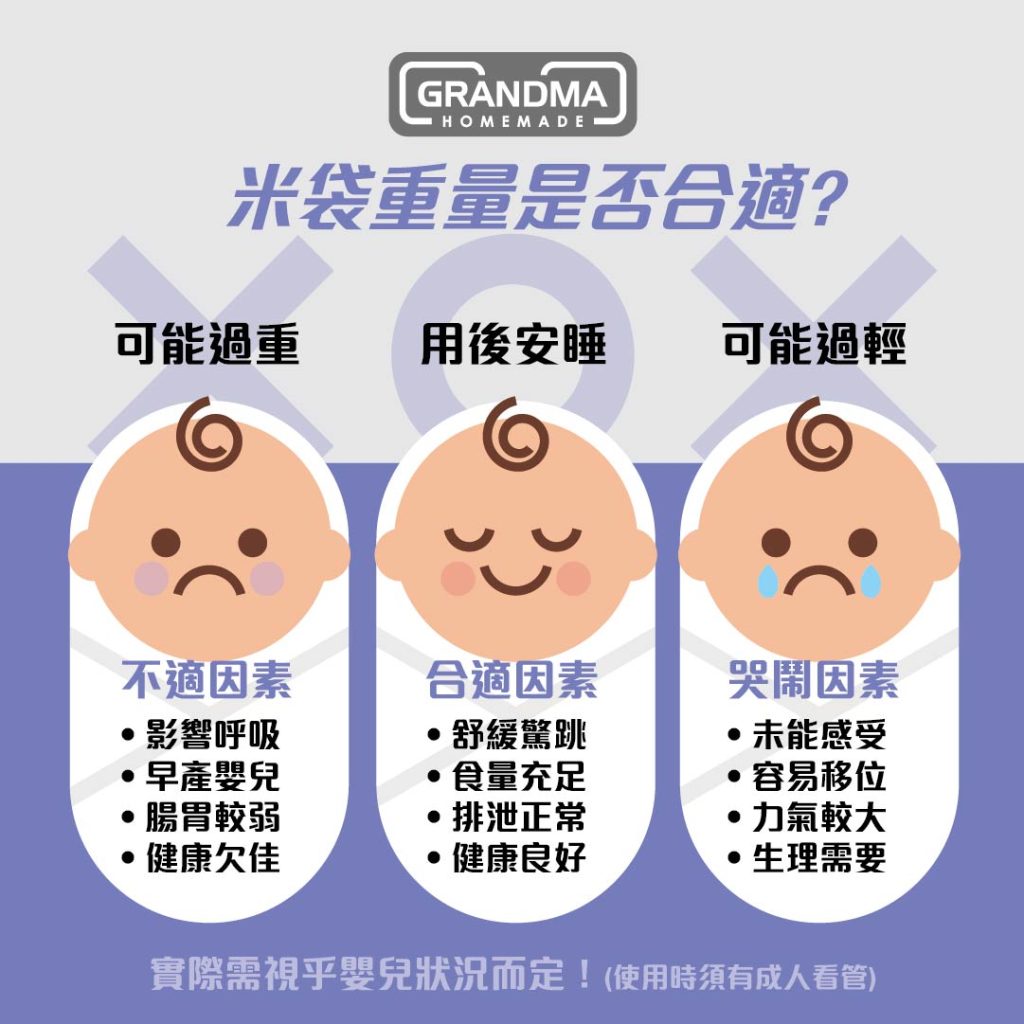 「米袋」是傳統稱呼,宅貨便售賣之米袋是由決明子製成的改良版。基於每位嬰兒狀況不同,如有需要請向相關專業人員尋求協助。所有圖片只供參考。