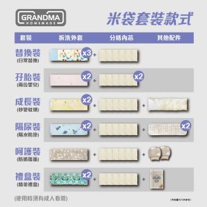 如只擔心重量過重,可選購「標準可變」局部抽出內芯自行減輕重量。而且變重米袋更特有「七分格內套」及「隱形拉鏈外套」可供拆洗,萬一不小心尿床或嘔奶等,可作多層保護,避免「助眠決明子獨立內芯」容易因受潮而變壞。